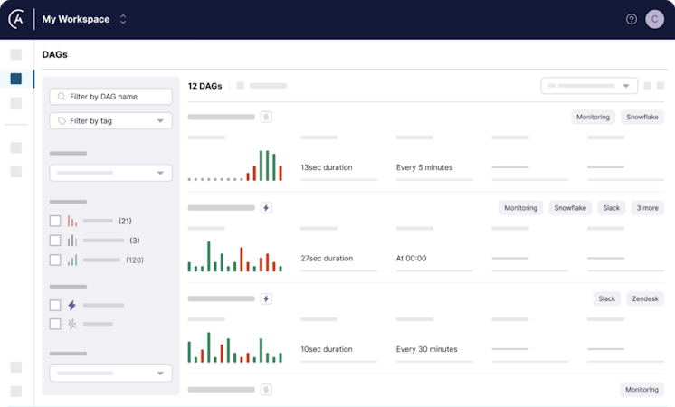 Astro is a unified data platform built on Apache Airflow® that ensures data is delivered on time, securely, and accurately. The platform offers enterprise-grade features to meet the demands of modern data operations.