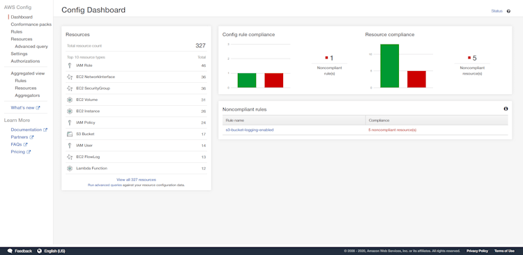 AWS Config enables team members to codify compliance requirements, deploy compliance rules, and automate configuration assessment processes. The resource relationship tracking tool lets users automatically discover, map, and track AWS resource relationships. With the aggregated dashboard functionality users can view and track rule compliance status for enterprise-wide applications across multiple accounts and regions.