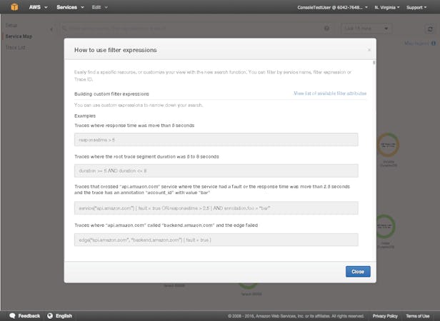 Using AWS X-Ray, businesses can also filter and view data for traces based on properties such as average latencies, HTTP response status, annotation value, timestamp, used database tables, and more.