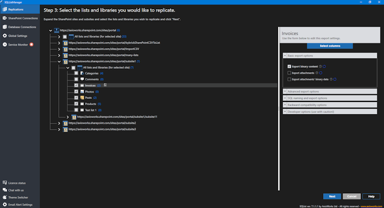 2. Select: Use SQList Manager to choose the lists you want to export, including lists across the entire site collection.