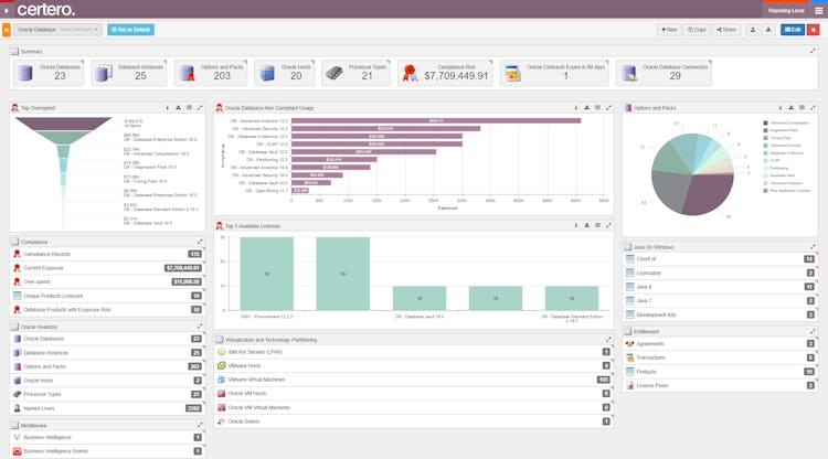 Certero for Oracle provides everything you need to discover and manage Oracle licensing. The solution is verified by Oracle LMS/GLAS for Oracle Database, Database Options and Management Packs, and Oracle Fusion Middleware.