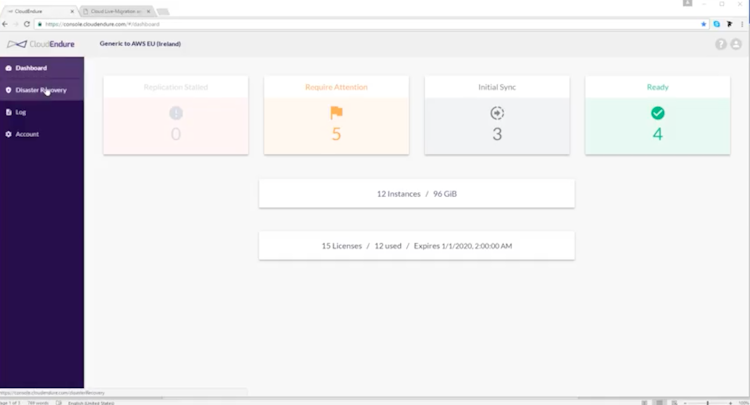CloudEndure’s user interface