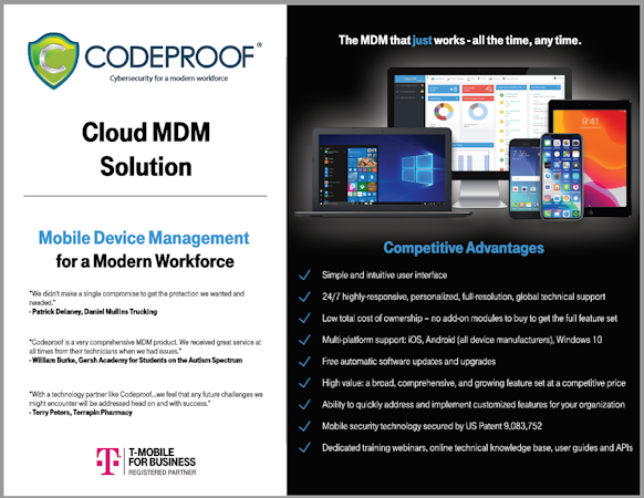 Codeproof is a cloud-based enterprise mobile management solution designed to help businesses across various industry verticals such as aerospace, defense, construction, education, government, healthcare, IT, nonprofit, retail, and other industries manage corporate data across mobile devices. Codeproof helps enterprises deploy and install applications across enrolled devices without security prompts during operations, streamlining enterprise information on selected applications and BYOD devices.