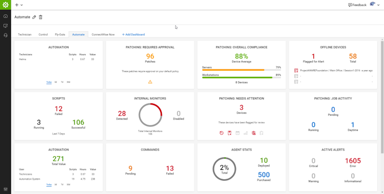 ConnectWise enables the automation of a broad range of tasks, encompassing software deployment, patch management, the resolution of common incidents, and the execution of tailored scripts.