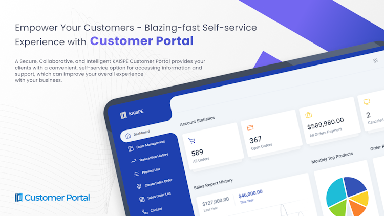 KAISPE Customer Portal provides order management, real-time shipment tracking, and access to product documentation. The solution helps enhance customer experiences by enabling them to access critical information when needed. The sales team's can manage workload through automation of repetitive tasks. The portal seamlessly integrates with various back-office ERP or CRM applications, ensuring an end-to-end experience.