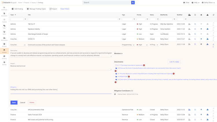 Datasite Acquire’s user interface