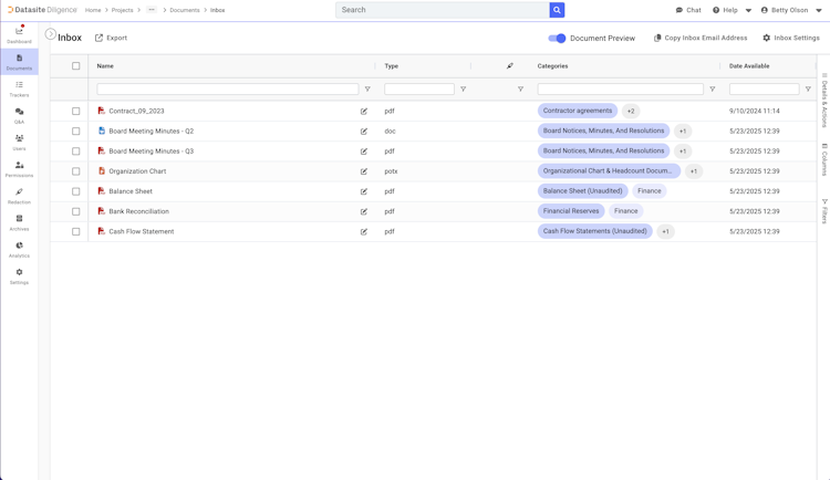 Datasite Prepare’s user interface
