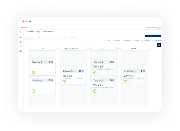 DBmaestro Database Release Automation and CI/CD platform is designed to help teams release faster while improving quality. The solution simplifies managing database release pipelines by enabling users to package, verify, deploy, and promote database changes through multiple environments.