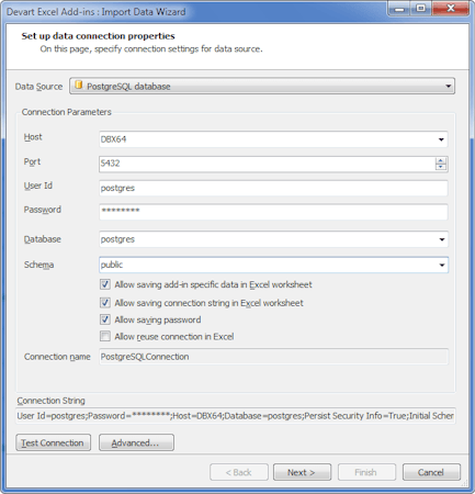 Devart Excel Add-In for PostgreSQL