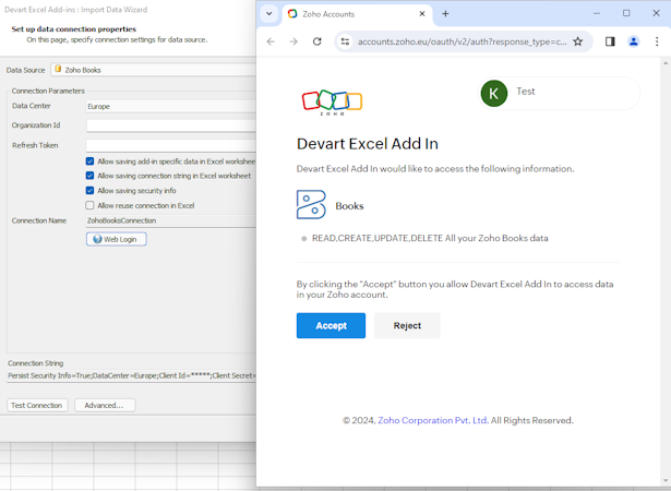 The Excel Add-in for Zoho Books offers extensive integration capabilities with Microsoft's ecosystem and Zoho's platform. The solution is compatible with multiple Excel versions, including Excel 2016, 2019, 2021, and Microsoft 365, ensuring broad accessibility across different organizational environments. The add-in utilizes Zoho Books' API infrastructure to establish secure connections, with regular updates maintaining compatibility with the latest API versions. While primarily designed as a standalone solution, the add-in can be purchased as part of larger bundles—including the Universal Pack, Cloud Pack, or Database Pack—that provide access to additional Devart Excel connectors for various data sources. This integration flexibility allows organizations to establish consistent data workflows across multiple platforms. The product's architecture ensures that all data transfers between Excel and Zoho Books occur securely, maintaining the integrity and confidentiality of sensitive financial information throughout the synchronization process.