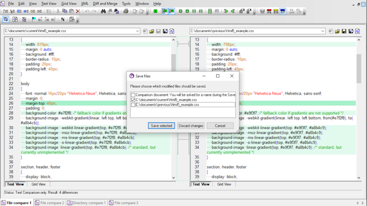 DiffDog lets staff members automatically recognize XML equivalence in comparisons, providing a complete view of changes across the entire project or enterprise. It lets users create high-quality diffs for several use cases, such as code maintenance, software development, version control, and compliance. With the three-way comparison functionality, users can compare, merge, and navigate differences between multiple file versions and the common ancestor file.