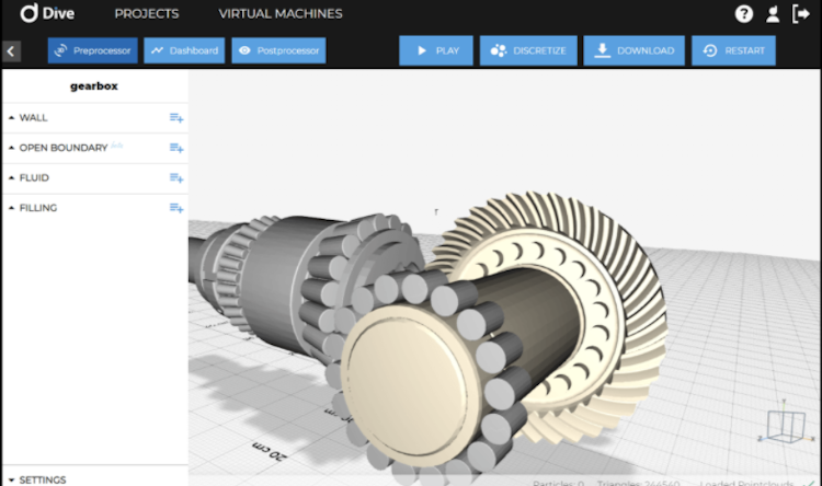 Dive can be used for designing gear shifts or tests for IPX certifications. It should be possible to carry out early-stage simulations during the design process, and there is no requirement for local installation on devices. The provider offers services via the web, enabling access through a browser from any location. The provider performs all software maintenance, aiming at reducing the need for human resources during development.