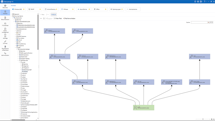 Users benefit from an automated and time-controlled inventory of the complete IT network. The software automatically provides the data obtained in the process in the form of network maps and more than 200 ready-made reports. In addition, you can easily use this data to create emergency plans and operations manuals.