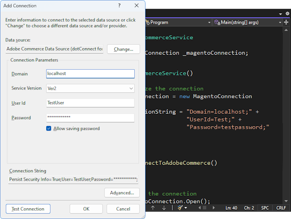 dotConnect for Adobe Commerce is an on-premise integration platform that facilitates direct access to Adobe Commerce and Magento data using standard ADO.NET interfaces. It allows for data management and integration of Adobe Commerce data into .NET applications, ensuring compatibility with popular data-oriented technologies.