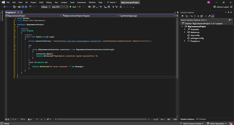 dotConnect for BigCommerce is an ADO.NET provider that helps teams work with BigCommerce data through the standard ADO.NET or entity framework interfaces. It allows teams to integrate BigCommerce data into existing .NET applications and integrate BigCommerce services with widely used data-oriented technologies. The data provider supports .NET version 9.0.