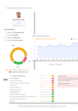 Get specific performance metrics on individuals to help you coach them in product experimentation and feature delivery.