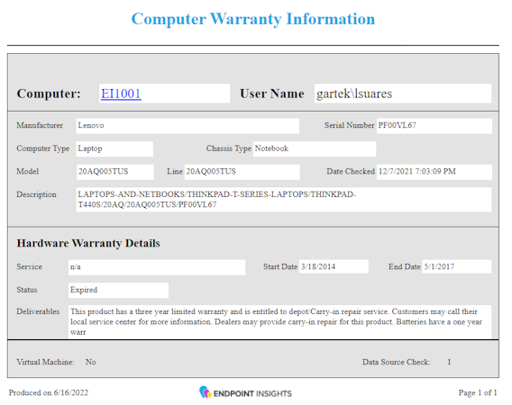 Discover what servers and printers are in your environment and who’s using them and quickly see device warranty status and device age.