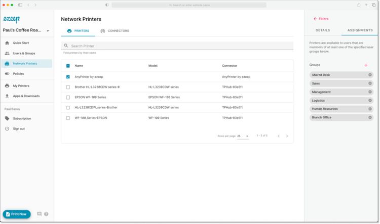 ezeep is a comprehensive cloud-based print management solution that enables businesses to manage multiple printers efficiently and allows users to print without the need to download drivers. The software supports printing from any device, including desktops, laptops, iOS and Android phones, and tablets. With its BYOD (Bring Your Own Device) support, guests can easily print from their own devices, enhancing flexibility and convenience.