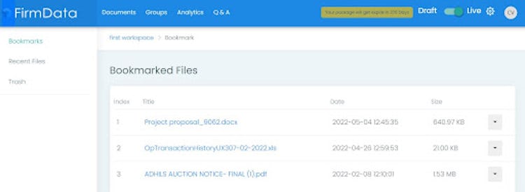 Users have the opportunity to bookmark the key documents they could need to refer to frequently throughout the deal with FirmsData.