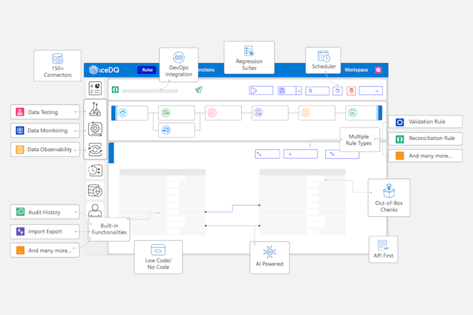 iceDQ: #1 data reliability platform with unified Data Testing, Data Monitoring, and Data Observability. iceDQ automates data pipelines and data migration testing, and its AI-based observability detects anomalies in real-time.