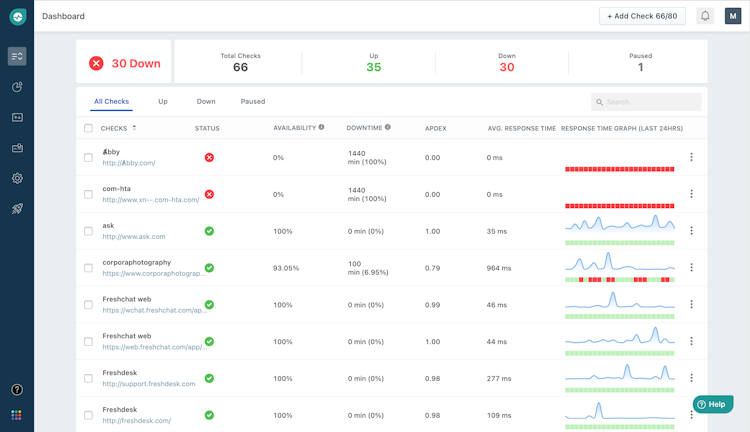 Freshping is a website monitoring program offering key features such as real-time monitoring and alerts/notifications, among others.