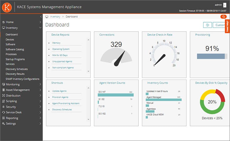 KACE is an endpoint management solution that offers a single point of control for managing IT systems across the entire organization. From initial deployment to ongoing maintenance, KACE is designed to fulfill all endpoint security and deployment needs—helping businesses quickly deploy, monitor, and manage their devices using a unified inventory database. KACE improves device security with on-demand hardware and software discovery, patch management, compliance reporting, and real-time monitoring of mobile endpoints.