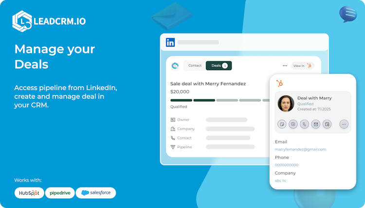 LeadCRM is the ultimate Chrome extension for LinkedIn, built to simplify lead management and streamline your sales workflow. With robust integrations to leading CRMs such as HubSpot, Pipedrive, Salesforce, and Zoho, it empowers professionals to connect LinkedIn directly to their CRM and manage leads more efficiently.