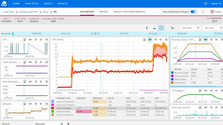 LoadRunner Cloud leverages root cause analysis to help organizations interpret test results and determine potential mitigation strategies for identified anomalies. Its elastic cloud, a self-driving test lab can automatically create multiple load generators across multiple cloud environments. Supervisors can use Virtual User Generator (VuGen), integrated development environment (IDE) applications, and other tools to create custom web scripts across Windows, Linux, and macOS systems. Teams can also create load tests using a REST API, and CSV or HAR files, and gain visibility into network conditions in real-time on a centralized dashboard.