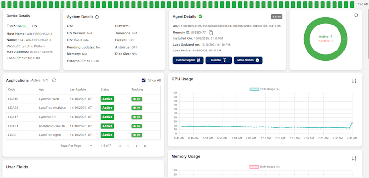 The software features a suite of integrated modules designed for comprehensive IT oversight. The Server Health Monitoring component performs continuous health checks with real-time alerts to ensure optimal server performance and reliability. Application Management Tools streamline software installations and upgrades, maintaining application performance while minimizing downtime during deployment cycles. The Log Analysis Services module provides in-depth analysis capabilities for security enhancement and troubleshooting, allowing IT professionals to extract actionable insights from system logs. Additionally, LynxTrac includes Remote Desktop functionality for direct system access and intervention when issues are detected.