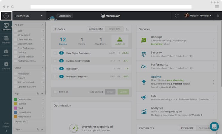 ManageWP’s user interface