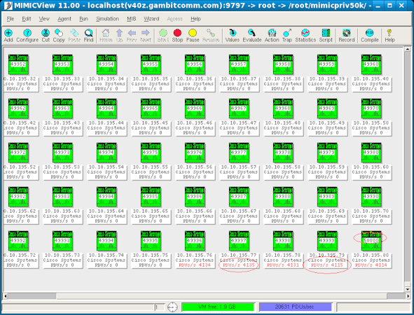 MIMIC SNMP Simulator creates a network of up to 100,000 SNMP manageable devices on one server. You can simulate any SNMP-based device with any number of public or private MIBs to run a large variety of device configurations with your SNMP management application. It lets you generate thousands of traps to simulate disaster scenarios.