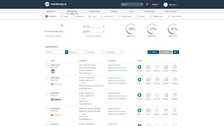 Morpheus is a powerful self-service engine to provide enterprise agility, control, and efficiency. Quickly enable on-prem private clouds, centralize public cloud access, and orchestrate change with cost analytics, governance policy, and automation.