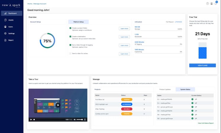 New Spark is a digital workflow tool helping businesses gather, store, collaborate, and publish videos on a unified platform. Teams can upload media assets directly from the platform or share the upload widget with colleagues. Once the content is on the platform, it is automatically geo-tagged, auto-tagged, and auto-transcribed as necessary.