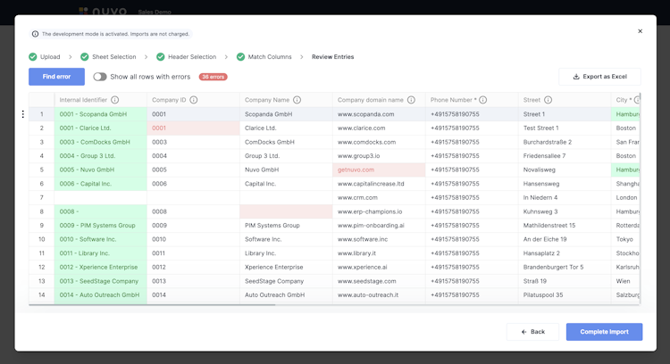 nuvo is a data onboarding tool, enabling you and your clients to automatically map, validate, clean and import spreadsheet data into any web-application. By implementing our solution you save countless hours of reformatting work and save significant developer resources when building an import application.