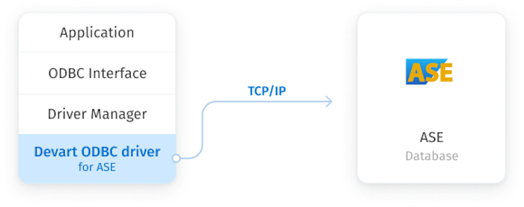 This connectivity solution enables various ODBC-aware applications to establish a direct connection to SAP Sybase Adaptive Server Enterprise via TCP/IP to eliminate the need for ASE client. A direct connection increases the speed of data transmission between an external application and ASE server for real-time analytics. It also streamlines the deployment process, since there is no need to distribute any additional client software with the driver.
