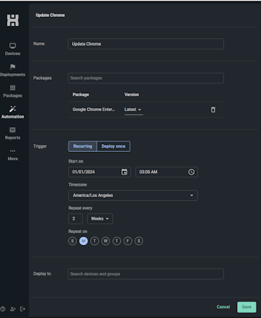 The platform’s automated remediation capability identifies and prioritizes vulnerabilities and applies patches based on configurable rules when new exposures or software updates occur. A package library contains more than two hundred prebuilt third-party applications and also accommodates custom packages for proprietary software deployments. Administrators may initiate single deployments or establish recurring schedules to maintain consistency across managed endpoints. A remote access feature permits direct control of devices regardless of user session status. Inventory management provides detailed visibility into installed software versions, connected drives and hardware specifications, while dynamic grouping facilitates targeted operations. Deployment history records capture outcome details, logs and command traces to support auditing and troubleshooting. Role management enables the creation of custom roles with granular permission settings to enforce access policies.