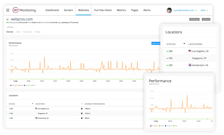 Plesk 360 is a monitoring solution that will help keep your website up and running at all times. It provides real-time monitoring of web servers, websites and apps so you can rest easy knowing that everything is running smoothly on your end.
