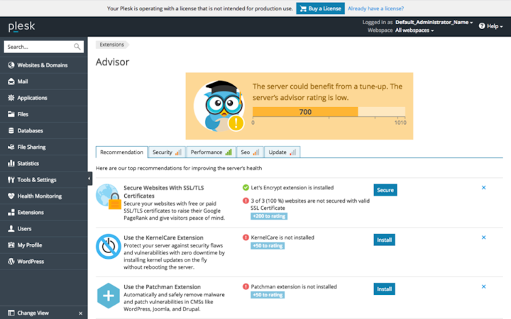 Plesk's key features