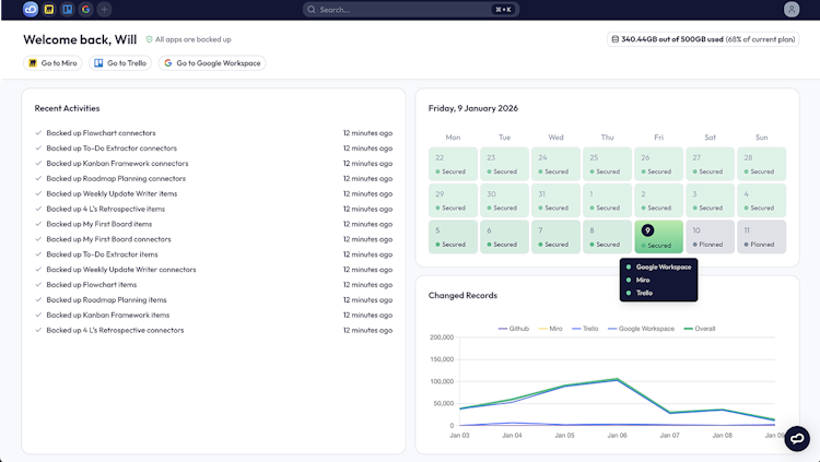 Unlike solutions that charge per user or per integration, ProBackup uses flat-rate pricing. One license covers unlimited users, all workspaces, and all supported integrations across 16+ cloud apps including Asana, ClickUp, HubSpot, monday.com, Airtable, Jira, Trello, Slack, and more. Plans start at $25/month (annual).