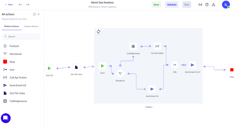 Using APIs, PROCESIO can integrate with any system and any system can integrate with PROCESIO. The second you start using the platform, you can define your business processes, interconnecting simply and efficiently all the data and systems necessary for the execution of the respective process.