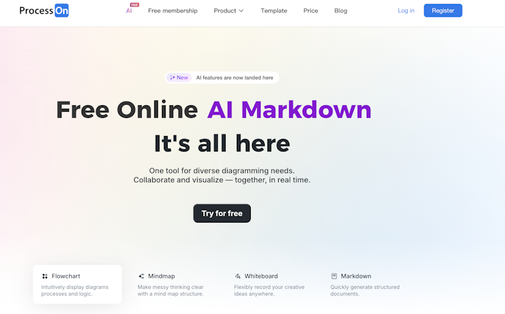 ProcessOn is a cloud-based diagramming and visual collaboration software designed for professionals across industries such as software development, project management, business analysis, education and enterprise operations. The platform provides a centralized environment for visual knowledge management and real-time collaborative diagramming. Features combine traditional diagram creation with AI-powered generation to produce professional-grade visual documentation in distributed work settings.