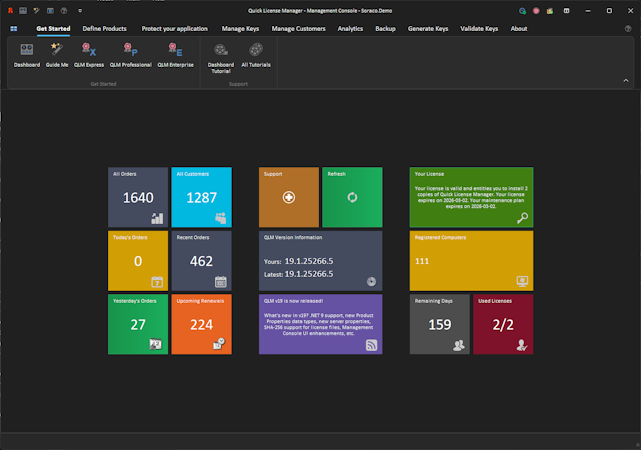 The software supports creating time-limited trial license keys as well as enabling fully automated subscription-based licensing workflows. It integrates with leading e-commerce platforms to automate license delivery upon purchase. Quick License Manager activates licenses seamlessly online or offline, ensuring 24x7 availability.