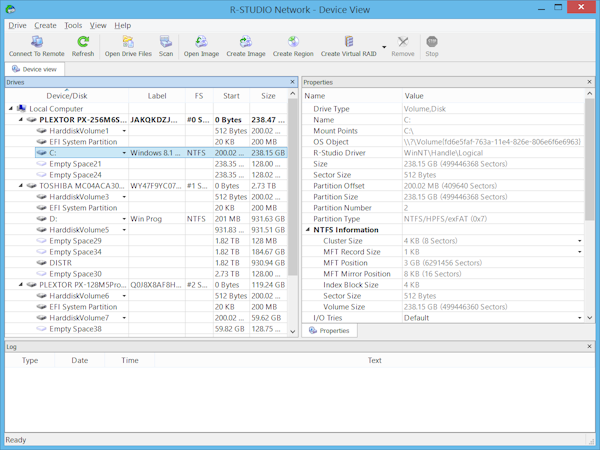 R-Studio is a data recovery solution used by technicians to retrieve data lost in virus wipes, partition damage, hard drive damage, and unintentional file deletion. This self-service tool works with Windows, Macs, and Linux PCs, and it supports FAT, NTFS, and ReFS system recoveries, as well as data recoveries from any drive it creates images.