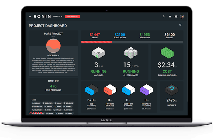 RONIN's intuitive design enables users to customize their cloud resources to fit their specific needs. The application's Auto Scaling Clusters simplify workload scaling, while RONIN manages access, networking, storage, cost management, and security, allowing users to focus on the task at hand. RONIN's cost management tools, including budget tracking, forecasting, smart scheduling, and email alerts, provide users with complete visibility and financial peace of mind when operating in the cloud. The application can even automatically pause projects once they have reached a pre-defined expenditure threshold.