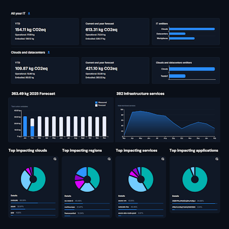 Our unique technology measures emissions from both cloud services (IaaS, PaaS) and on-prem infrastructure—far beyond just virtual machines—with no complex integration required.