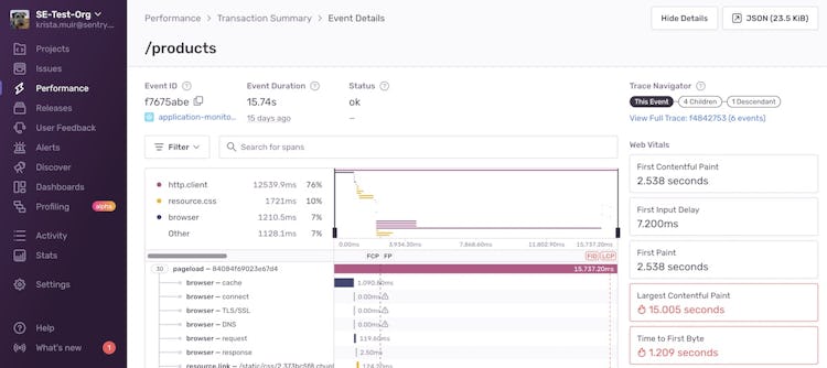 - Breadcrumb Event Trail: Knowing the timeline of events that led to an alert is the best way to address root cause and assess priority. Sentry exposes server-side history—debug logs, network requests, SQL queries—and client-side details—user interactions, HTTP requests, console messages—that reveal the full state of your app.