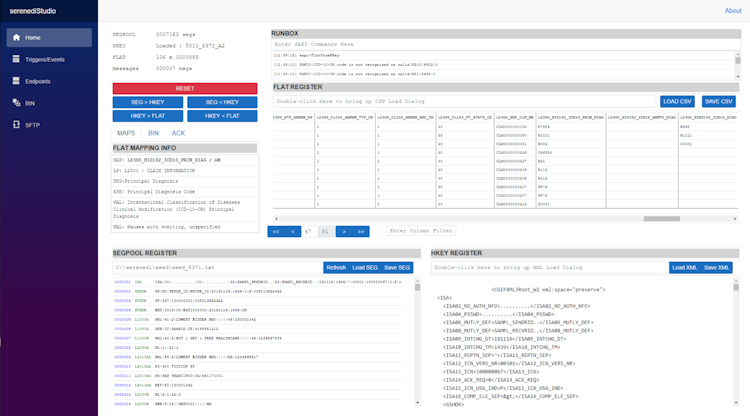 The application allows employees to configure workflows, manage internal database schemas, and synchronize transaction details across Oracle and SQL server databases and CSV files. SERENEDI lets administrators create outbound files, automatically insert additional rows and columns in managed tables when new data is entered, track events, and store error messages in a built-in database. It also helps professionals transform 5010 EDI transactions into numerous forms and create custom triggers, Secure FTP sessions, and database endpoints.