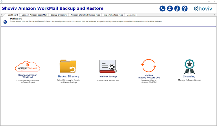 Shoviv Amazon WorkMail Backup and Restore’s user interface