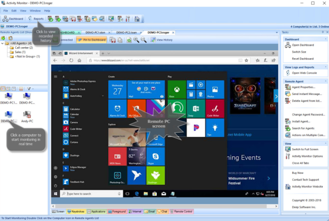 SoftActivity Monitor is a cloud-based employee monitoring solution that helps businesses monitor staff activities to protect enterprise systems from internal threats. The system captures employees’ screen activities, logs websites visited, programs used, keystrokes typed and programs executed. This software product can also be used as an employee time tracker, helping businesses to manage staffing costs more effectively while improving productivity.