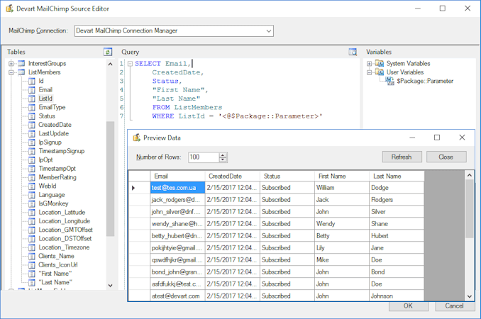 • The solution helps build SSIS-based integration solutions for Mailchimp and synchronize data with SQL servers and various data sources.